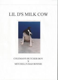 | | BREEDING | | SIRE NAME: | COLEMAN'S BUTCHERBOY | | DAM NAME: | MITCHELL'S BAD BONNIE | | BREEDER: | MITCHELL | | OWNER: | F. WRIGHT | | PHYSICAL CHARACTERISTICS | | SEX: | FEMALE | | COAT COLOR: | WHITE | | distinguishing features: | Black markings | | documentation | | registered name: | LIL D'S MILK COW | | land of birth: | USA | | land of standing: | USA | | data | | dog id: | 34838 | | views: | 923 | | created by COOLHANDJEAN on | 02/11/2014 | | last modified | 04/07/2015 05:30:10 PM |