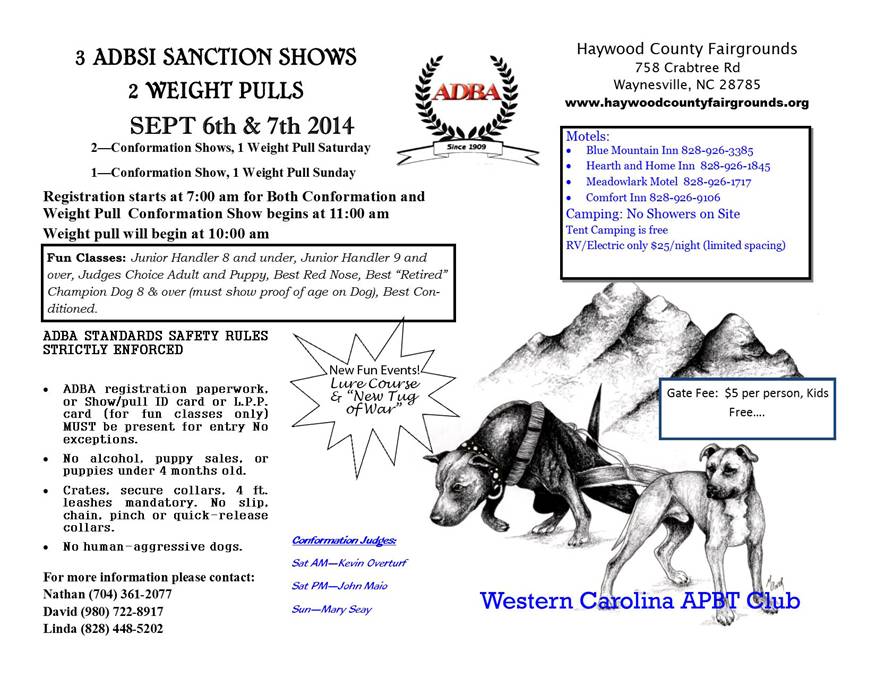 Western Carolina APBT Club Sanctioned Event September 6th and 7th