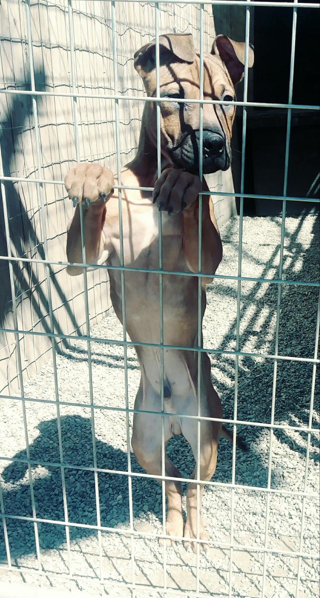 He was my pick of the litter and was keeping him myself but I only have one spot available here and kind of need it for something else. Since I have a lot of this family here already, he's not really needed. If I had the room he wouldn't be going anywhere. Really love this little guys personality. Weighted him yesterday. 23lbs.