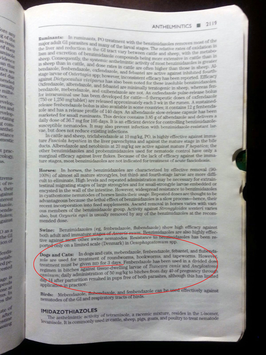 It is also easy to understand WHY fenbendazole is given so frequently when you read about the drug in general, understand how it works, what it's for, and when you also understand the digestive tracts of which animals it's being given to