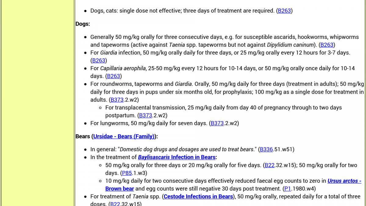 I found this article about febendazole dosage in dogs I thought I'd share. Link: http://wildpro.twycrosszoo.org/S/00C...nbendazole.htm