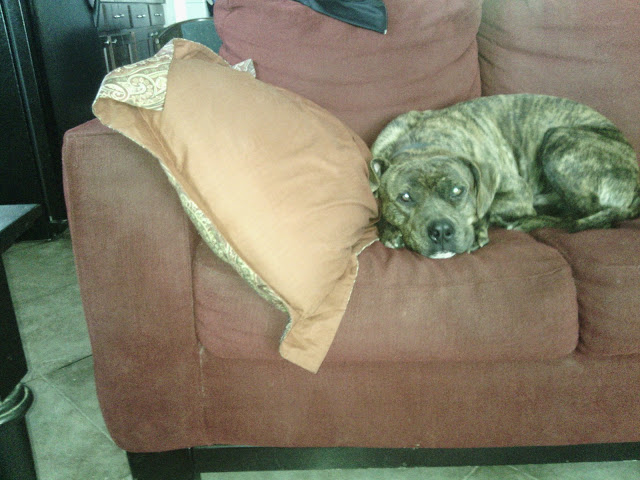 And that's his couch not mine lol..he got the better of it over time so I got another one and that one is his.