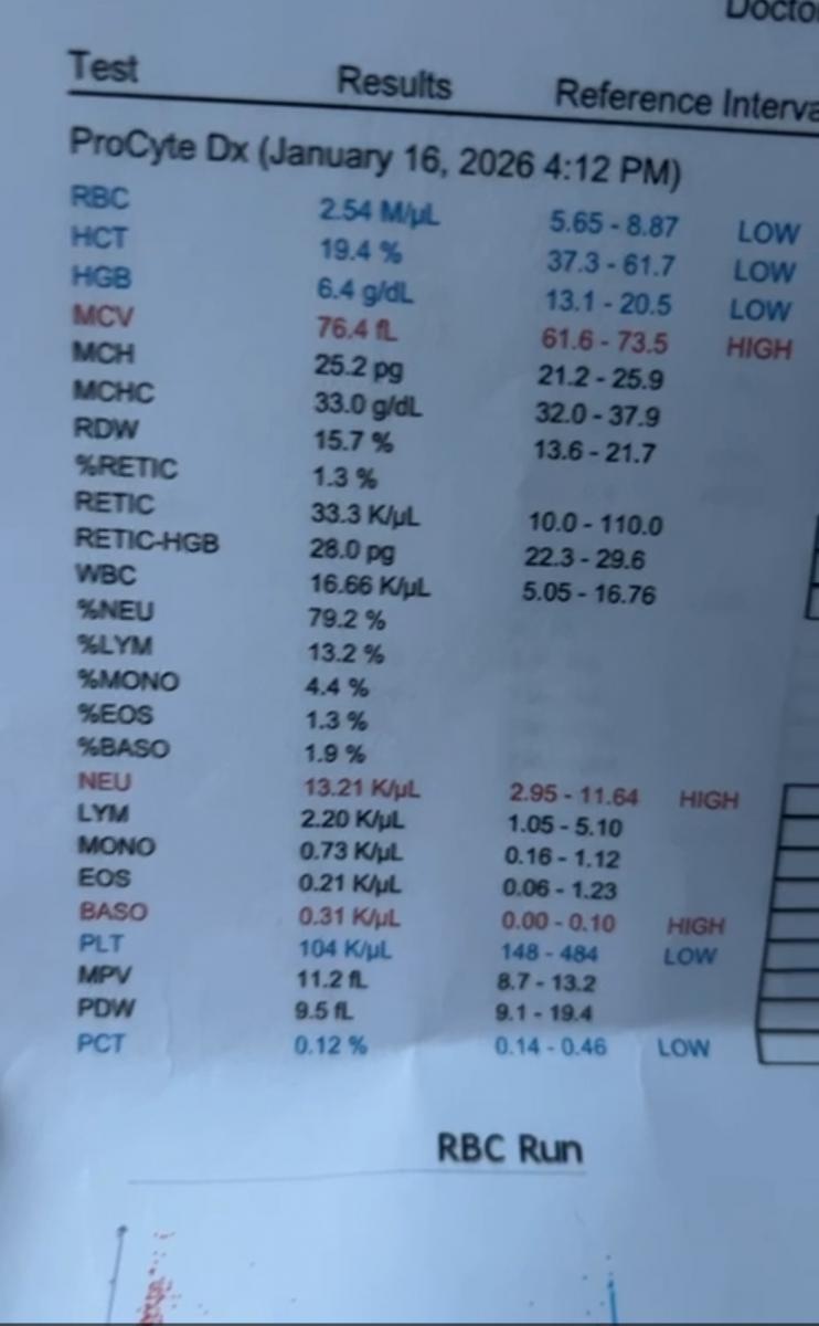 The last 2 babesia positive dogs treated here were at blood counts of 15 and 33 day 1 of treatment. After 7 days, they were at 39 and 46. 2 weeks later 42 and 49 and both negative for Babesia. We will continue to test.